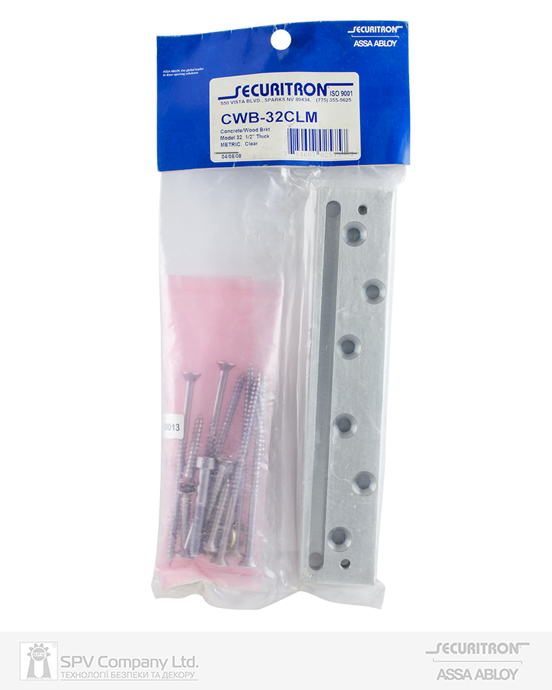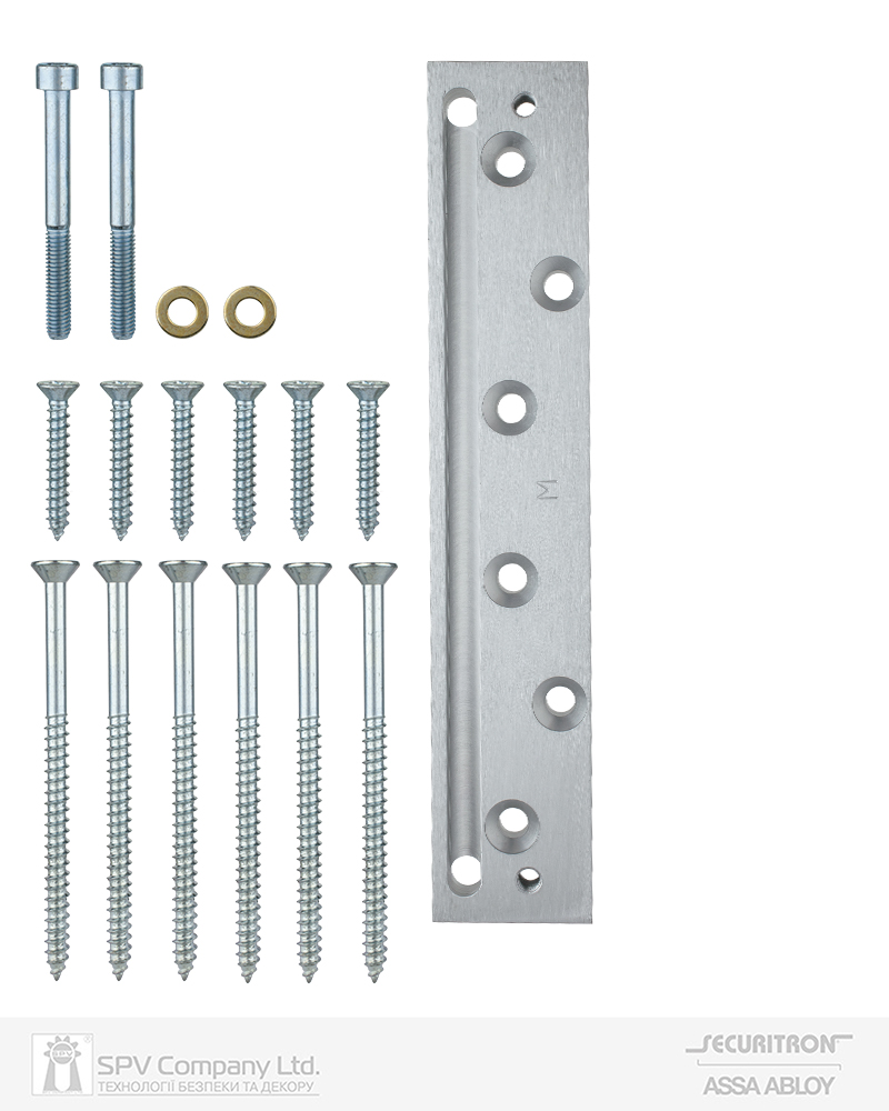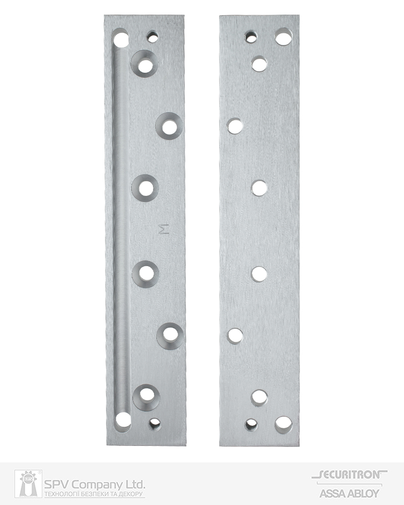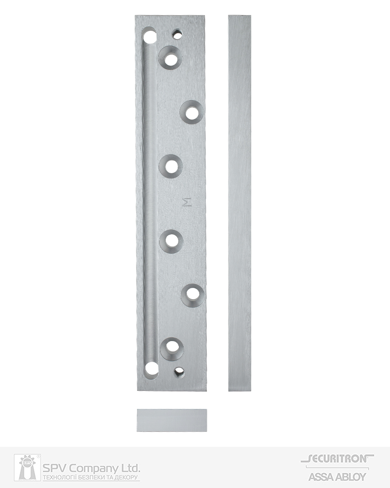 Монтажна пластина до замка Securitron M32 для монтажу на залізобетонні або дерев'яні дверні рами. Використовується коли необхідно опустити замок нижче. Має преднарізані отвори для кріплення замка