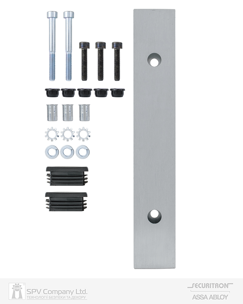 Універсальна монтажна деталь для монтажу магнітного замків Securitron M32, М62 на двері з вузькою рамою. Забезпечує прихований монтаж дротів.
