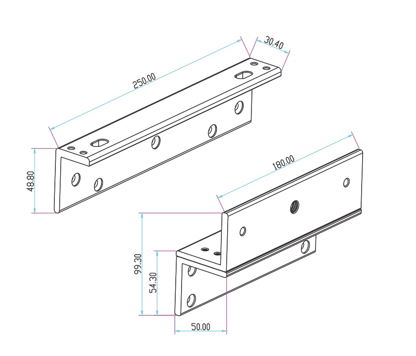 - Розміри (Ш х В х Г), мм: L: 250 x 48.8 x 30.4мм Z: 180 x 50 x 50