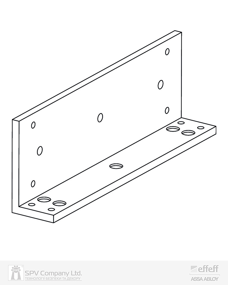 L-подібний кронштейн для встановлення електромагнітного замка MAG-600SM на двері з вузькою рамою, коли верхня частина коробки не має горизонтальної основи для монтажу замка.