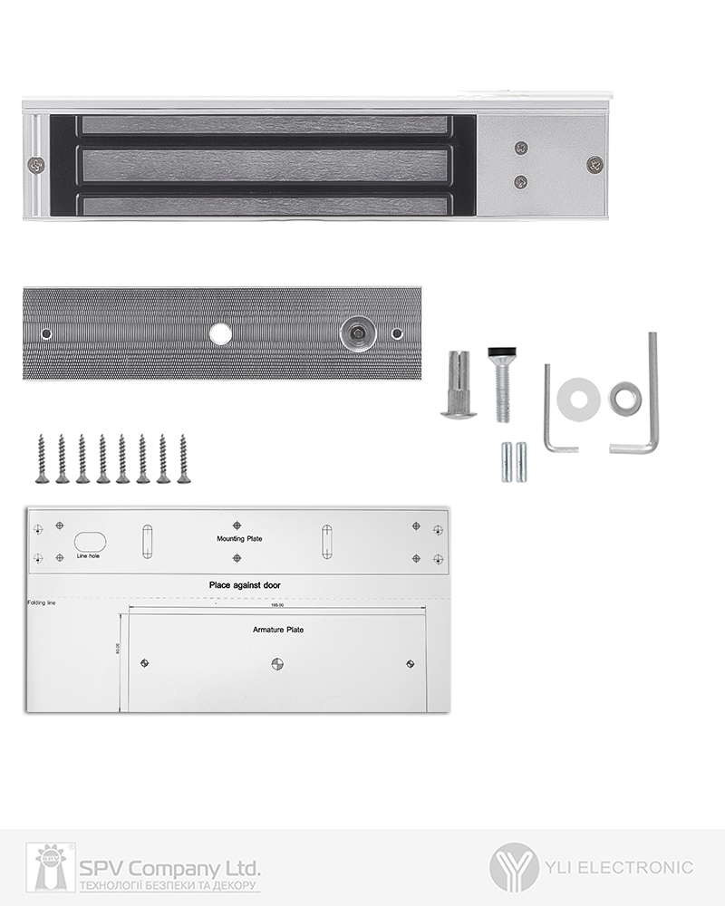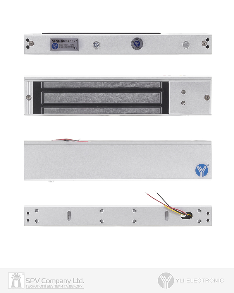 Замок електромагнітний YLI YM-350N(LED)-DS. Має світлодіодну індикацію, з окремими датчиками стану дверей та замка.