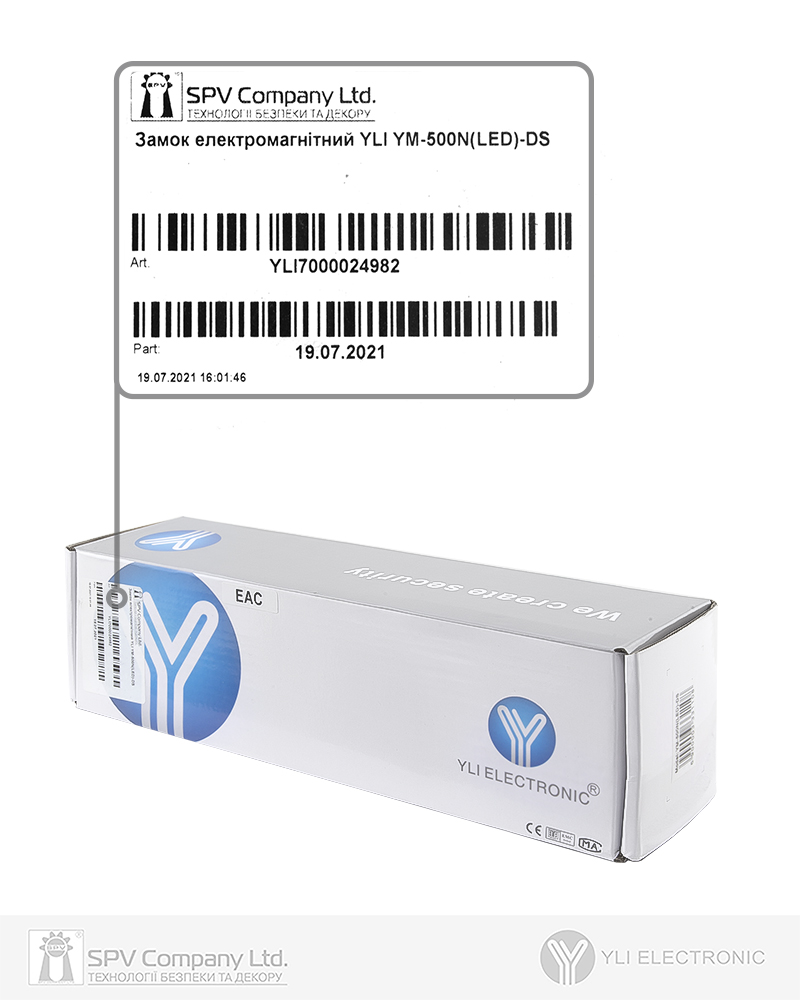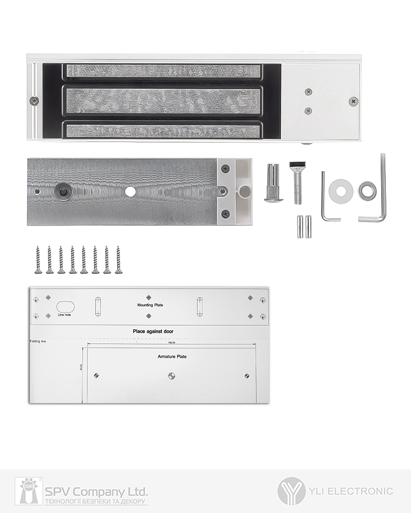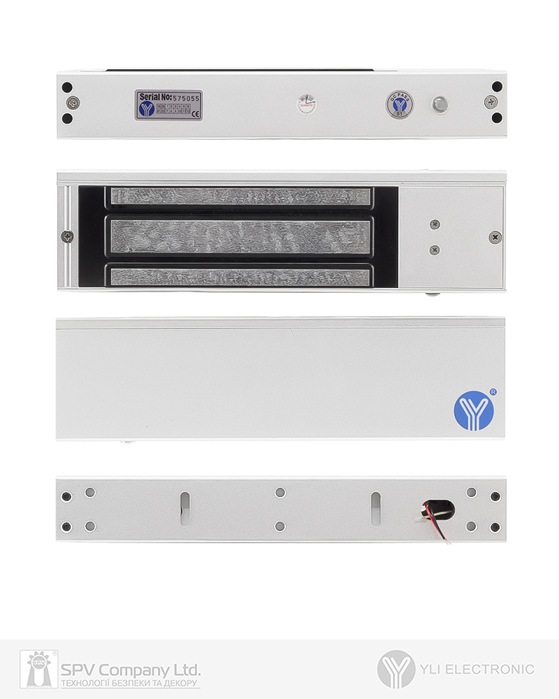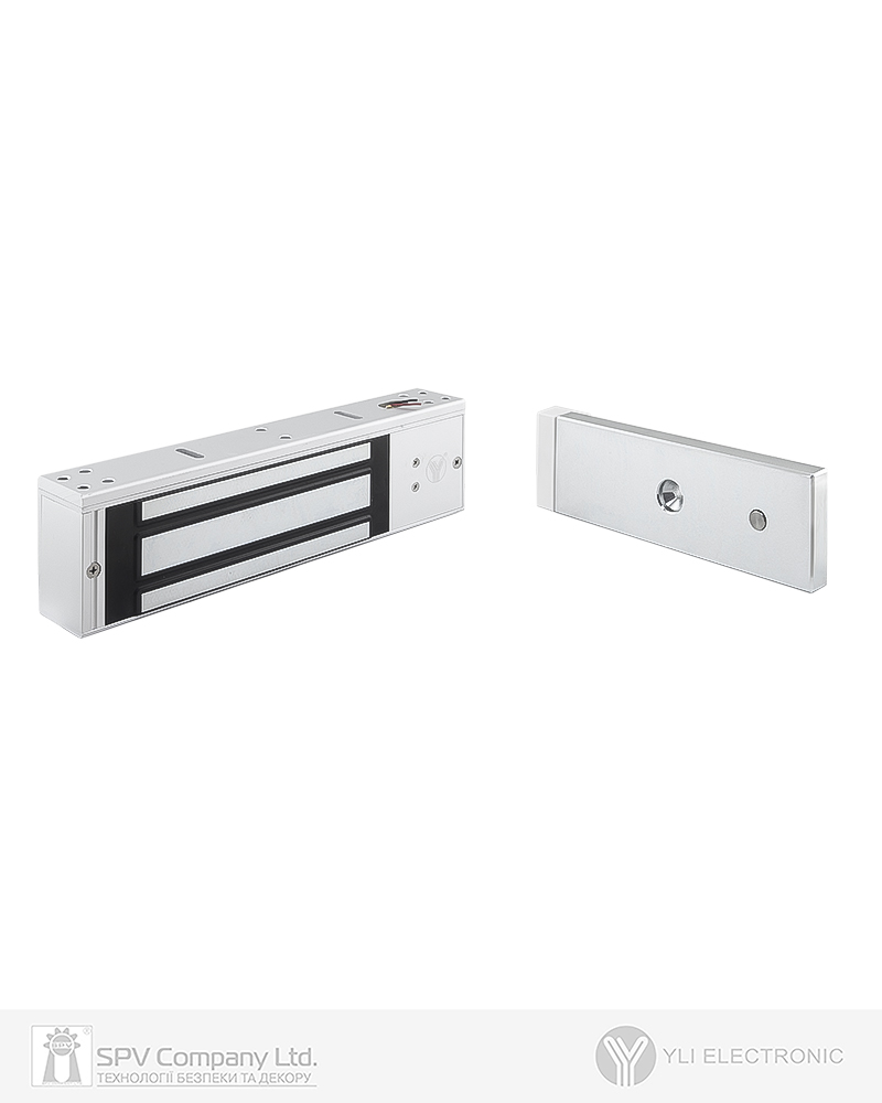 Замок електромагнітний YLI YM-500N(LED)-DS. Має світлодіодну індикацію, з окремими датчиками стану дверей та замка.