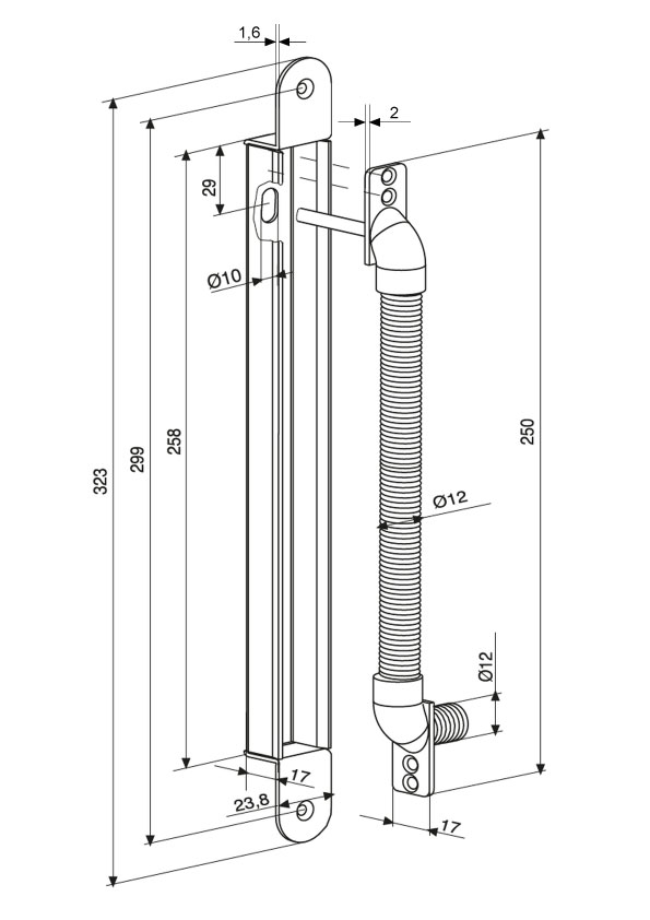 Застосування: для дверей з кутом відчинення до 120° і відстань від осі завіс до дверної рами менше 20 мм.