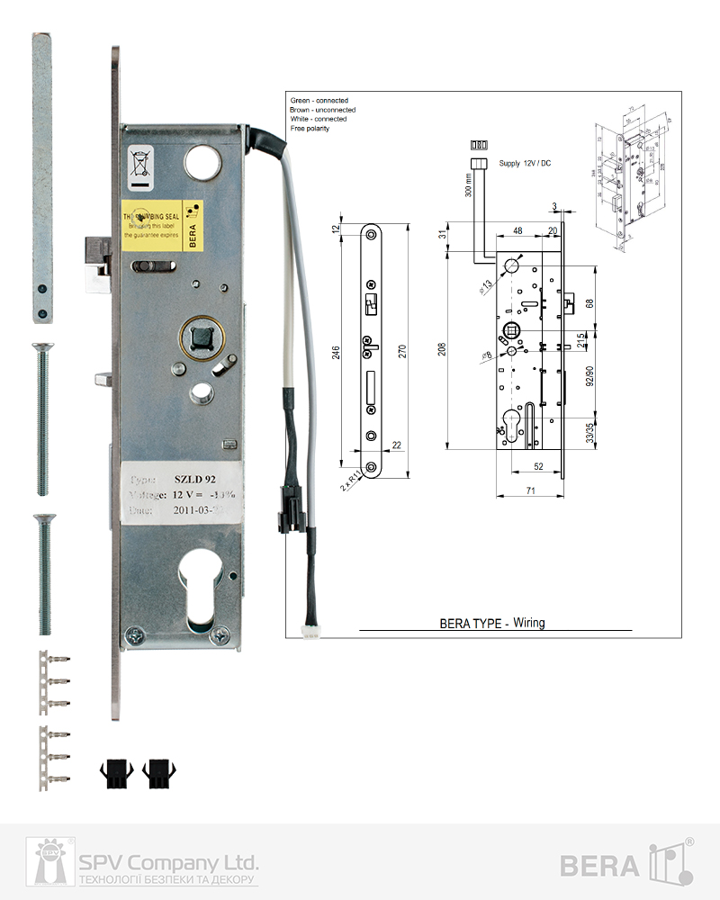 Електромеханічний однонаправлений соленоїдний замок BERA SZLD92 з функцією антипаніки та керування ззовні ручкою електричним імпульсом призначений, як основний замок для замикання профільних та суцільних вхідних дверей, профільних, дерев’яних та металевих протипожежних дверей у під’їзди багатоквартирних житлових будинків в приватному секторі та для зовнішніх дверей з середньою прохідністю для закладів освіти, громадських та інших комерційних організацій, які мають вихід назовні з будинків та потребують забезпечення швидкого евакуаційного або аварійного виходу. Замок має додатковий вихід аудіо&візуальної сигналізації стану замка (відчинений/зачинений).