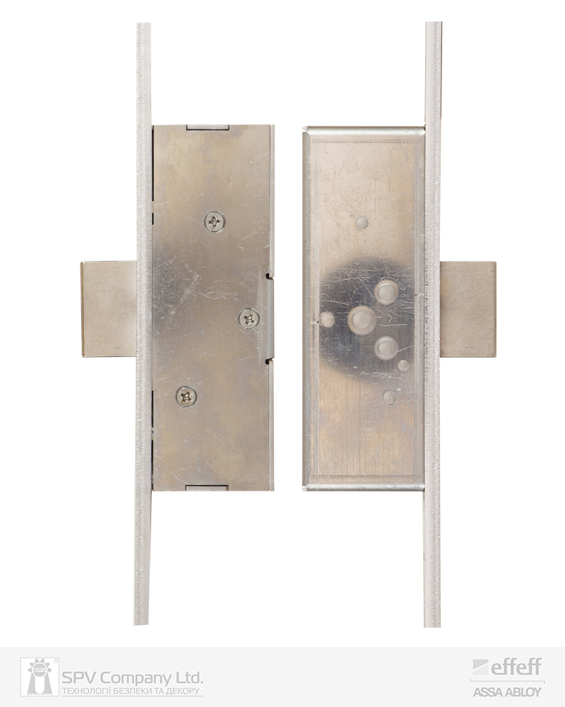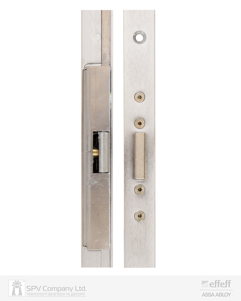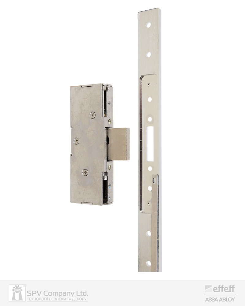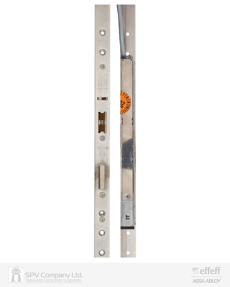 Електромеханічний багаторигельний однонаправлений соленоїдний замок EFF EFF 819-14V92B45E45 з функцією керування ручками електричним імпульсом ззовні і зсередини приміщення призначений для вузькопрофільних металопластикових, алюмінієвих та металевих профільних протипожежних дверей спеціального призначення таких об’єктів, як промислові підприємства, лікарні, комерційні та торгові організації, як основний замок підвищеної надійності, що ідеально підходить для багатоточкового замикання дверей, які потребують більшої міцності.