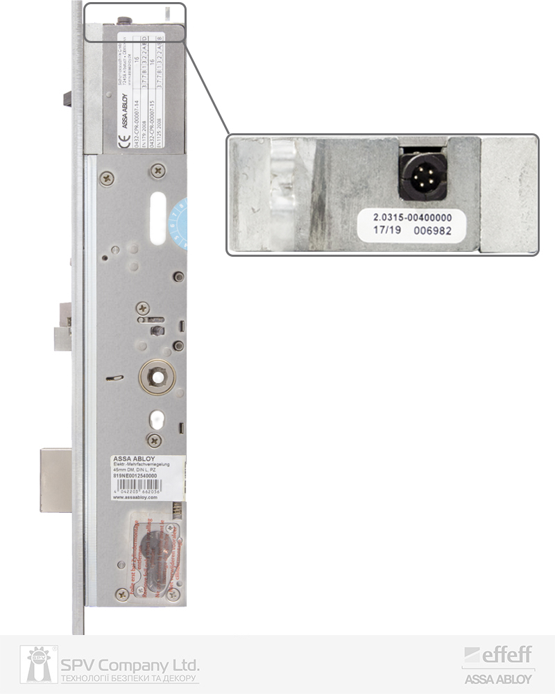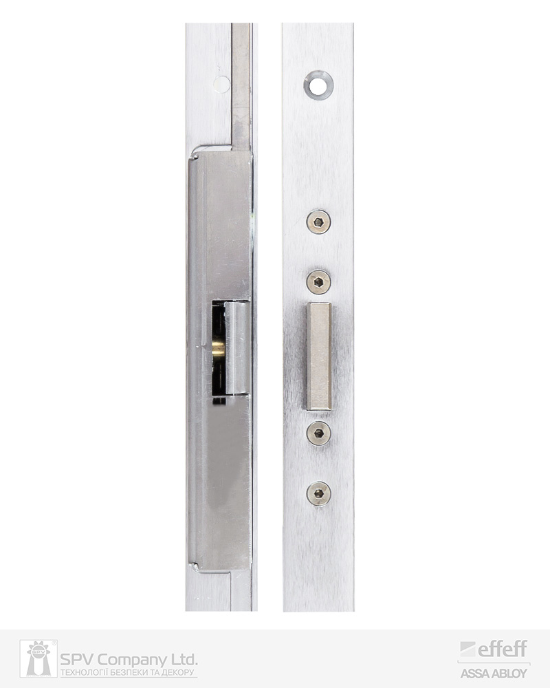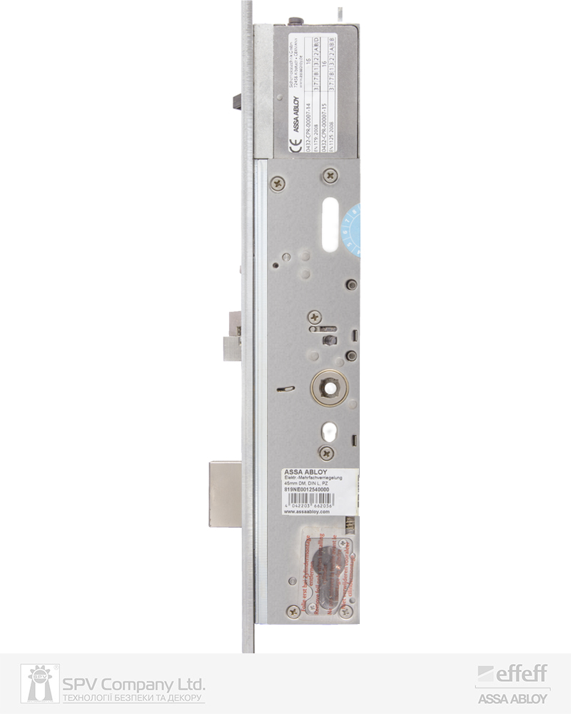 Електромеханічний замок багатоточкового замикання з електричним керуванням зовнішньою ручкою та вільним виходом. Автоматичне замикання при зачиненні дверей. Призначений для встановлення на одностулкові двері. Задовольняє вимогам до зламостійких та протипожежних дверей, а також вимогам до дверей аварійних та евакуаційних виходів відповідно до стандартів EN 179 та EN 1125.