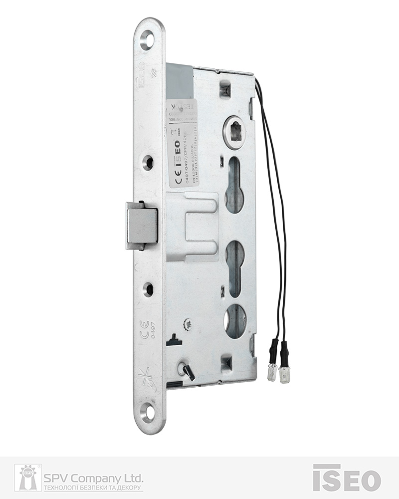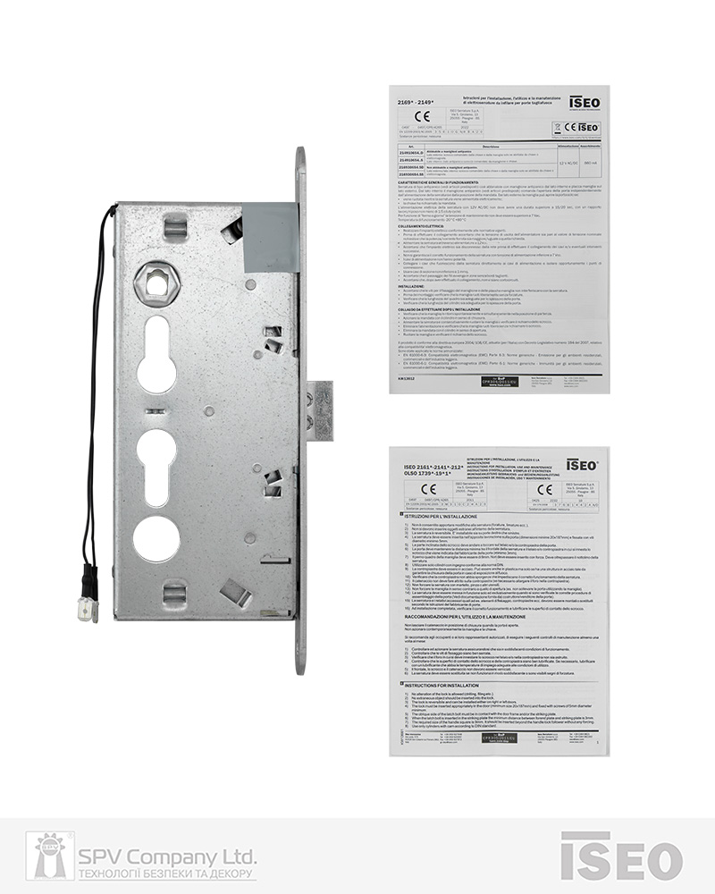 Лівий електромеханічний соленоїдний замок екстреного відкривання дверей ISEO 214910654 з мікроперемикачем для дистанційного керування електричним імпульсом та з механізмом панік-функції призначений для професійного комплексного встановлення сумісно із системами антипаніки у всіх без винятку громадських, виробничих, житлових будівлях та спорудах різного призначення в металевих протипожежних евакуаційних та аварійних дверях з метою гарантованого забезпечення ефективної евакуації та запобігання потенційної трагедії з масовою кількістю людей у разі виникнення пожежі та при надзвичайних ситуаціях, викликаних панікою людей.