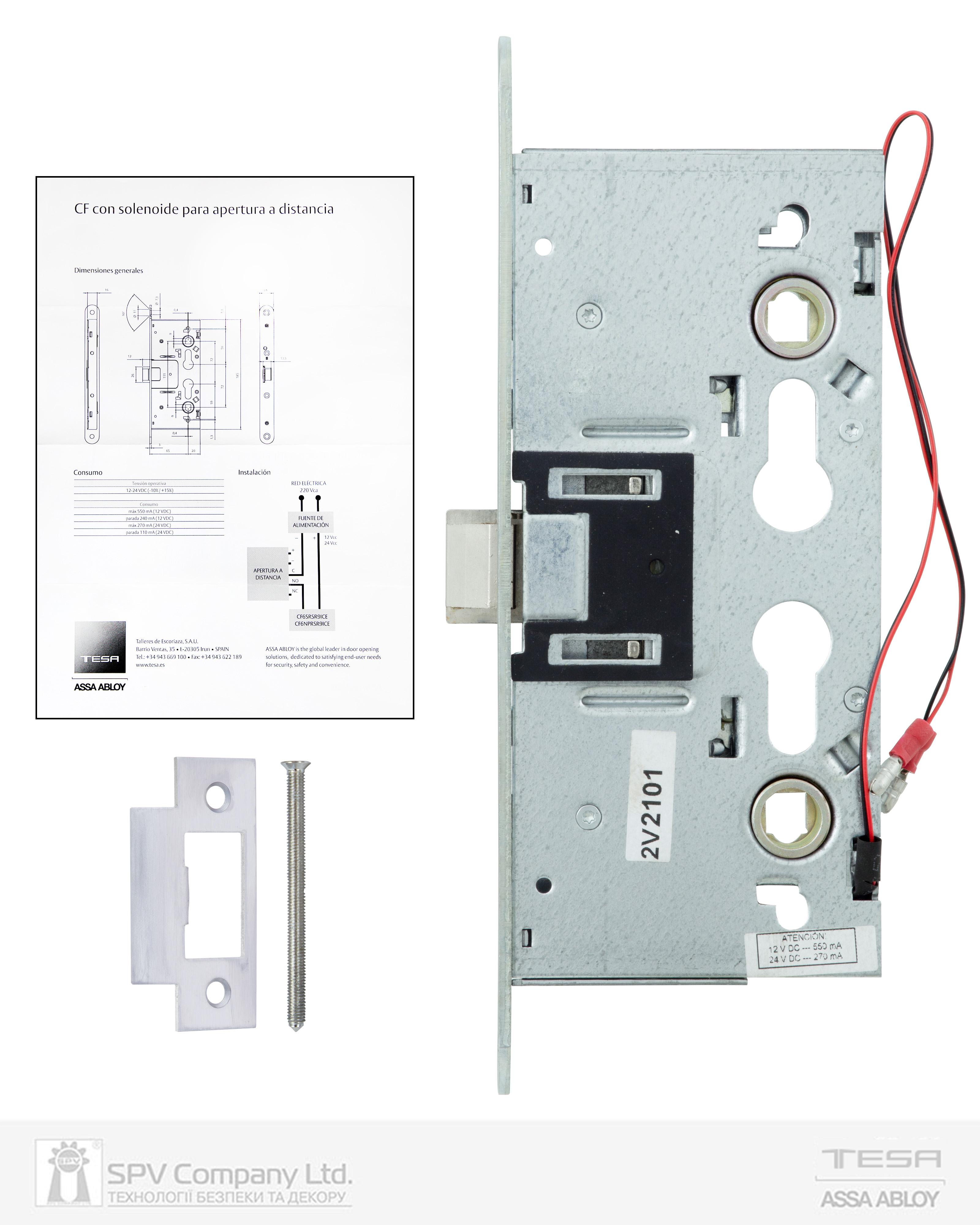 - замок врізний TESA CF320SR9ZCE (для пасивної стулки двостулкових дверей);