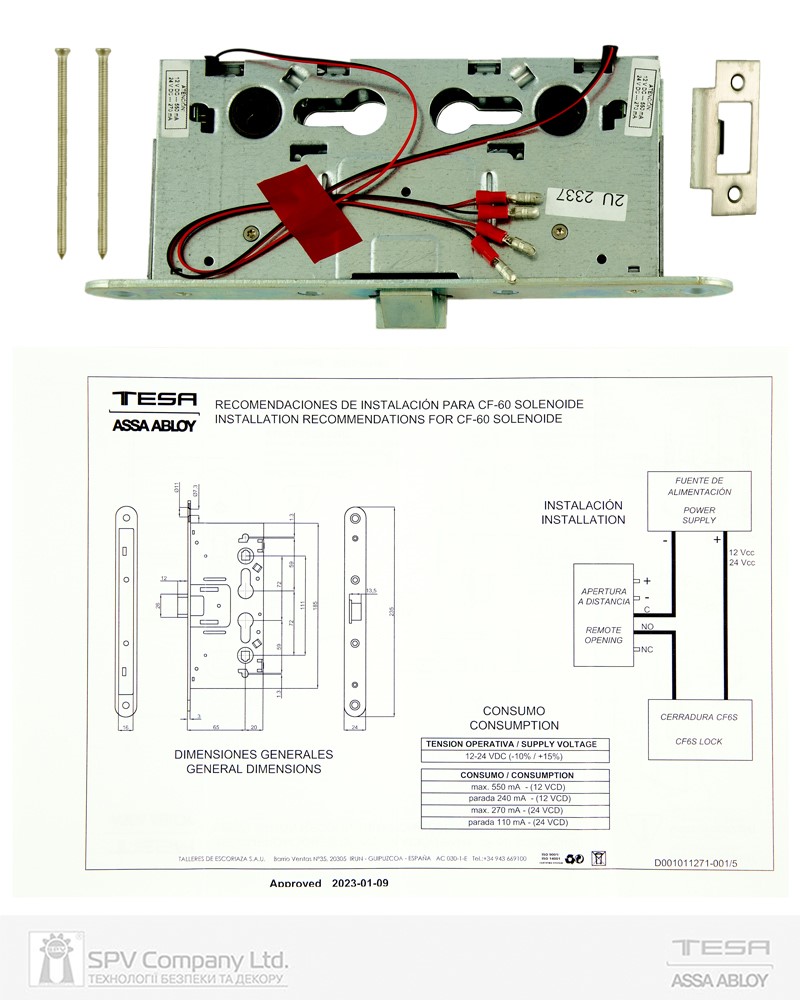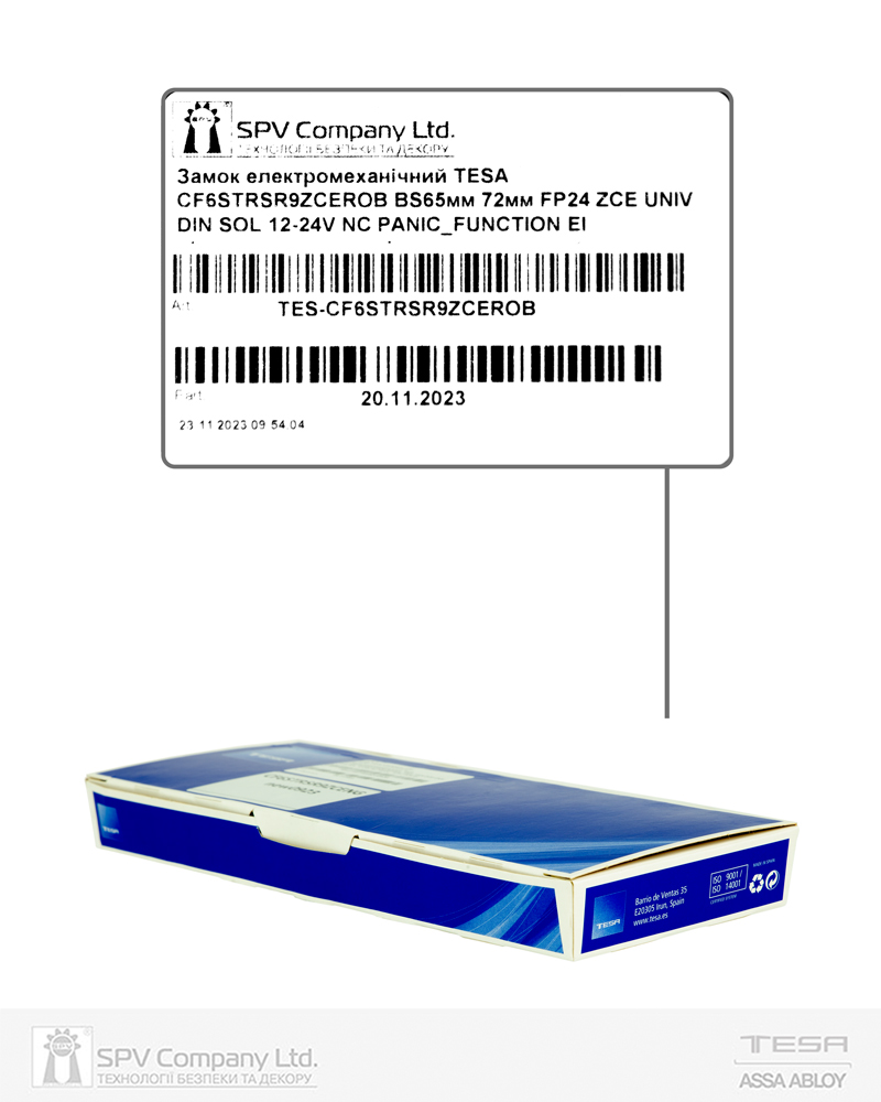 Універсальний електромеханічний соленоїдний замок екстреного відкривання дверей TESA CF6STRSR9ZCEROB, серії CF60 з мікроперемикачем для дистанційного керування електричним імпульсом та з механізмом панік-функції призначений для професійного комплексного встановлення сумісно із системами антипаніки у всіх без винятку громадських, виробничих, житлових будівлях та спорудах різного призначення в металевих протипожежних евакуаційних та аварійних дверях з метою гарантованого забезпечення ефективної евакуації та запобігання потенційної трагедії з масовою кількістю людей у разі виникнення пожежі та при надзвичайних ситуаціях, викликаних панікою людей.