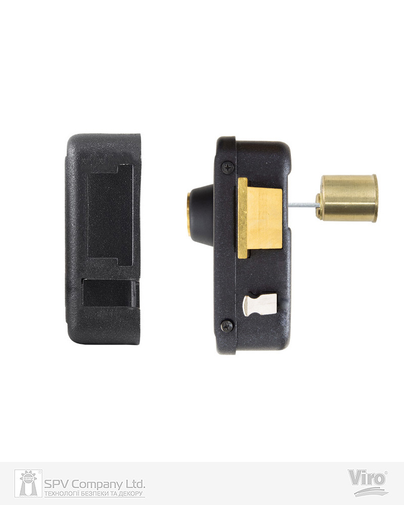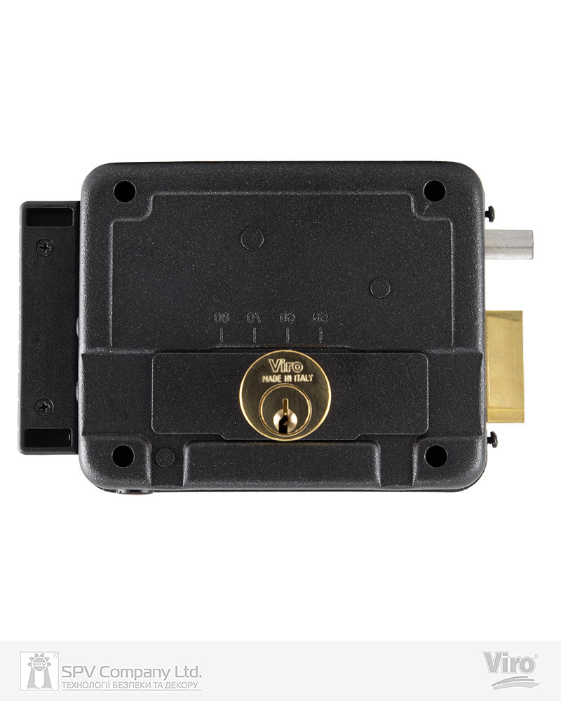 - замок взаємозамінний за BackSet та отворами кріплення із більшістю накладних замків VIRO: при монтажі можна використовувати з раніше встановленою запірною планкою іншого замка.