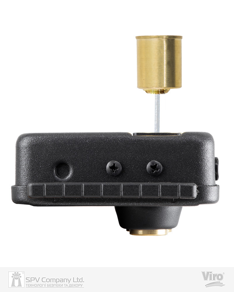 - комплект пари циліндрів VIRO 791/712: круглі, п’ятипінові, з твердої латуні; внутрішній VIRO 791 зафіксований до корпусу замка, не регулюсється; зовнішній VIRO 712 із хвостовиком зчеплення до механізму замка, довжина хвостовика регулюється в межах 35-85мм; клас захисту Standard Security – плуги і піни латунні, захист від свердління - піни грибовидної форми; маса комплекту 0,27кг; ключі універсального спецпрофілю VIRO UN;