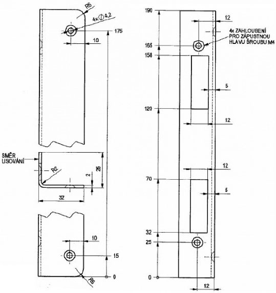 - Розміри: (Висота х Ширина х Глибина Х Товщина), мм: 190х25х32х2