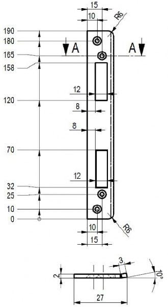 - Розміри: (Висота х Ширина х Глибина Х Товщина), мм: 190х27х3х2