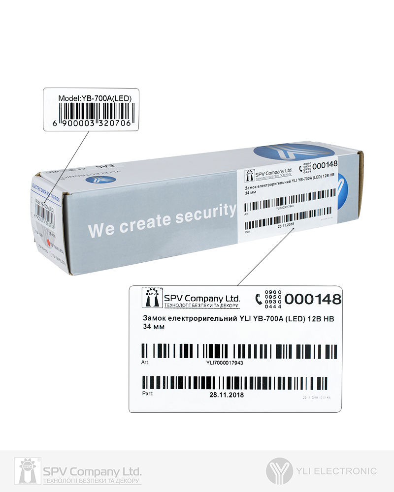 Технічні характеристики ЕЛЕКТРОРИГЕЛЬНОГО ЗАМКУ YB-700A (LED)