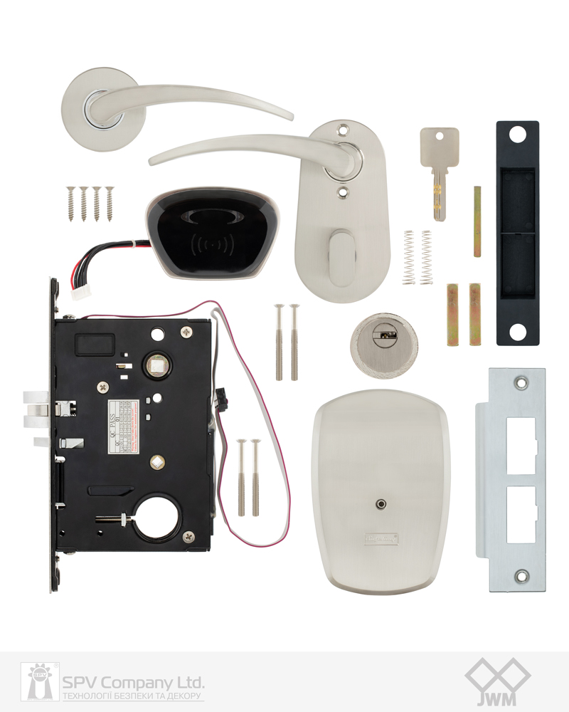 Замок JWM серії F8 сучасного дизайну на розділених щитках. Гармонійно поєднується з сучасним інтер’єром готелю завдяки своєму дизайну. Розроблений спеціально для використання в індустрії гостинності з оптимальним співвідношенням ціна/якість.