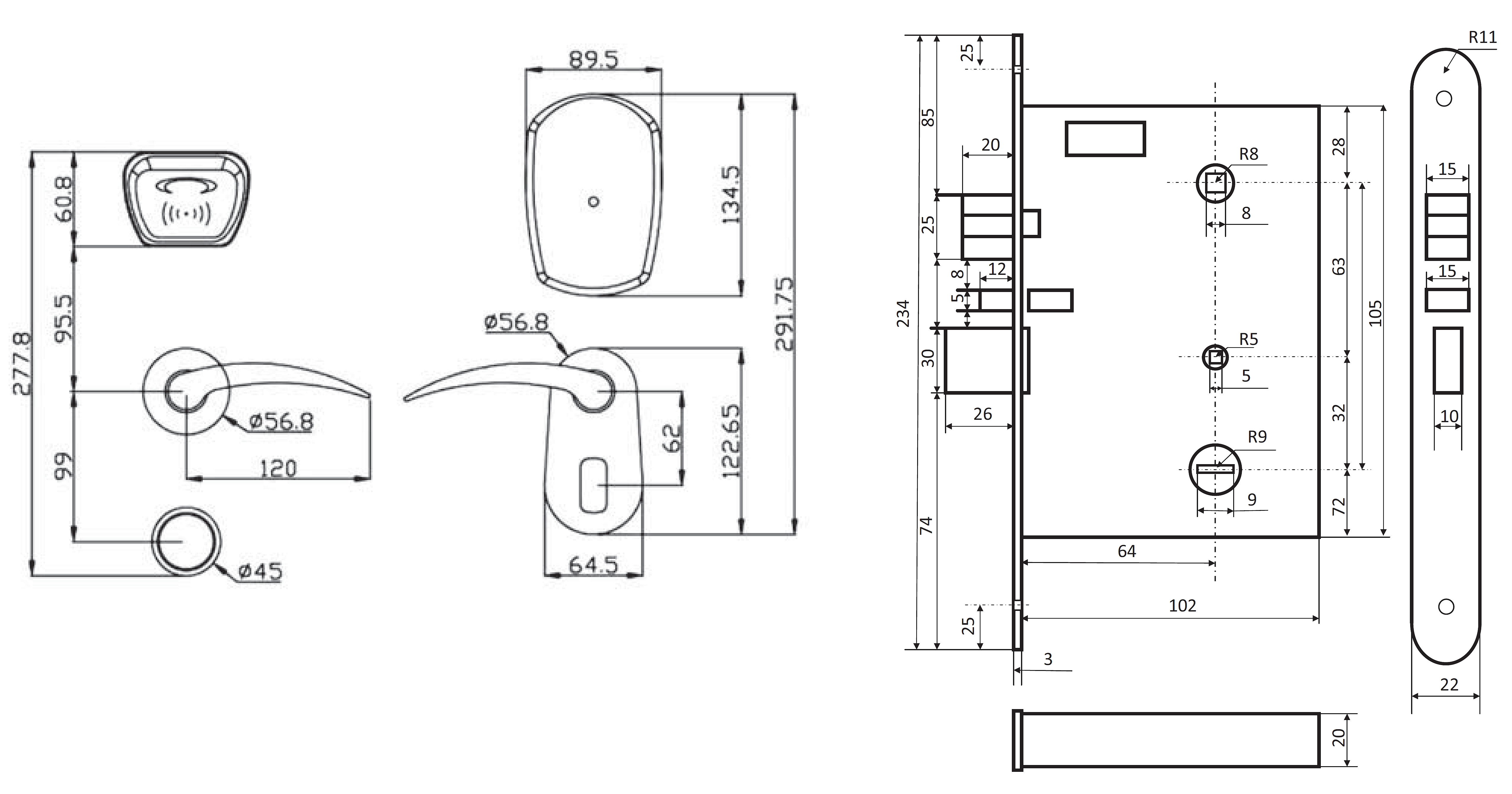 - Придатний для встановлення на дерев’яні або металеві двері, не потребує прокладання дротів