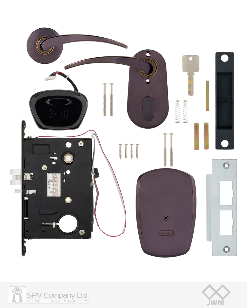 Замок JWM серії F8 сучасного дизайну на розділених щитках. Гармонійно поєднується з сучасним інтер’єром готелю завдяки своєму дизайну. Розроблений спеціально для використання в індустрії гостинності з оптимальним співвідношенням ціна/якість.