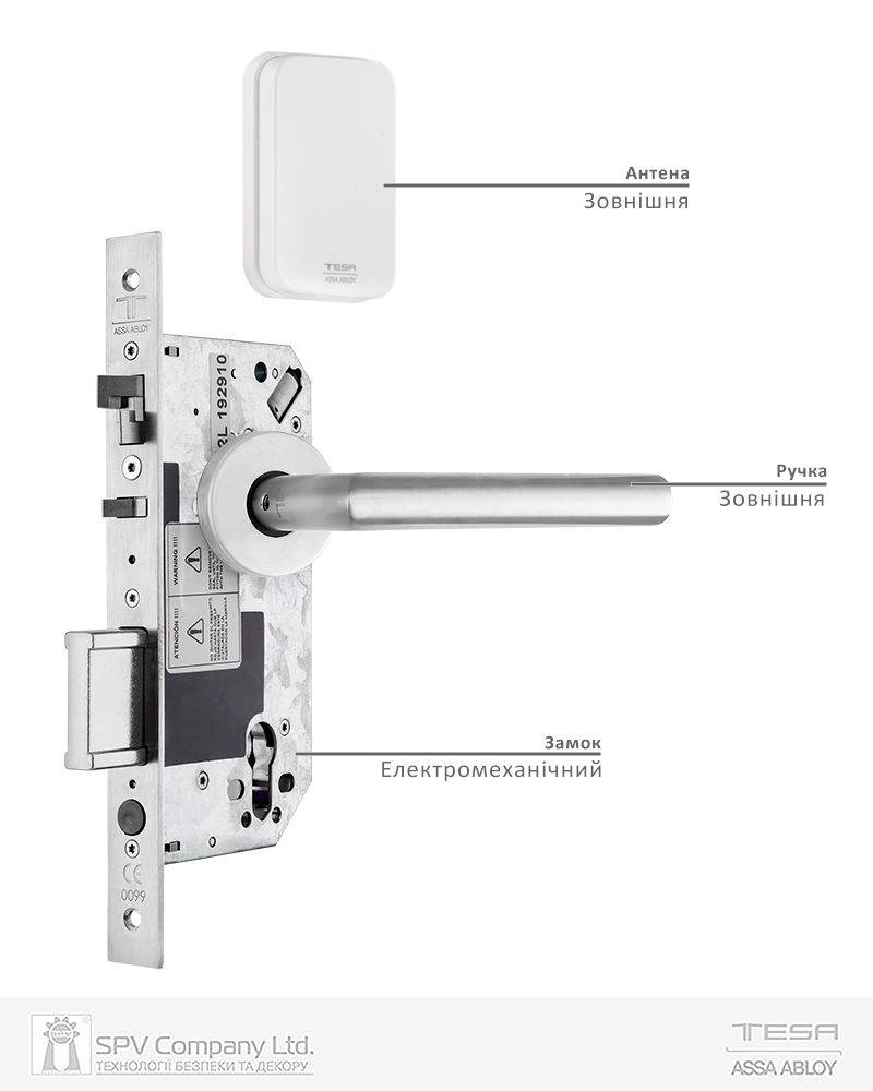 - Можливість поєднання в одної системі з іншими електронними замками та пристроями доступу TESA