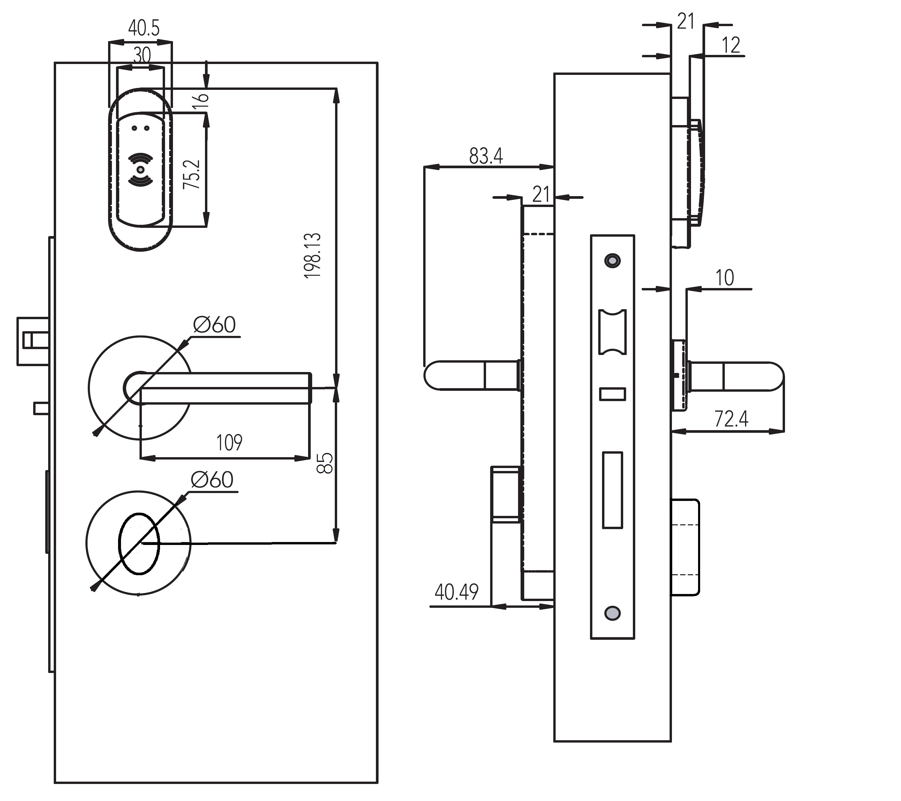 - Врізний замок: без корпусу замка, призначений для встановлення на механнічні циліндрові замки стандарту DIN