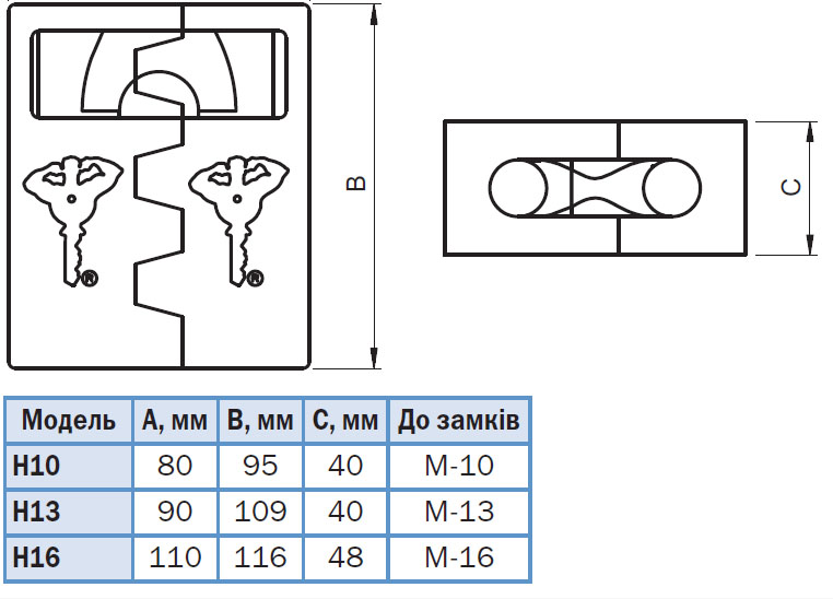 Захисні навіси MUL-T-LOCK HASP 10 для висячих замків С-серії виключає доступ до корпусу та дужки замка. При замиканні замок повністю ховається у навісах, і таким чином максимально захищений від пошкодження та спроб злому. Монтаж : електрозварюванням або гвинтами (див. інструкцію з монтажу). Навіси приварюються до воріт по периметру і/або прикручуються чотирма гвинтами (гвинти в комплект не входять). Матеріал: чавун, що піддається зварюванню. Обробка: чорна порошкова фарба.