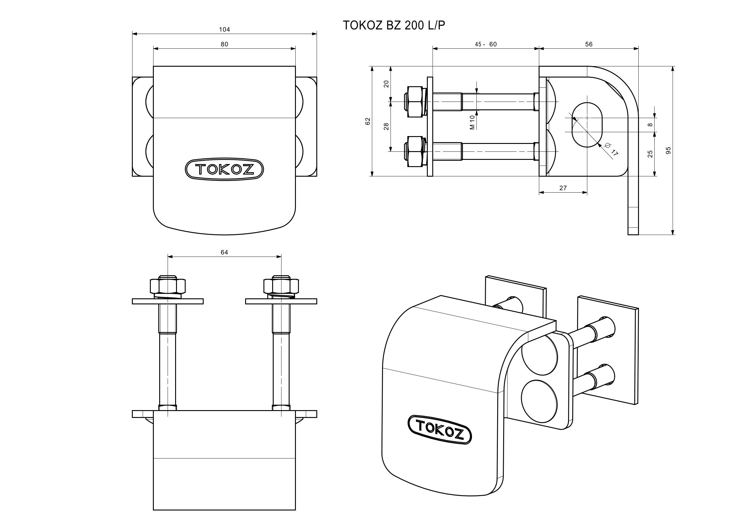 Навіси TOKOZ BZ 200 праві призначені для замикання двостулкових дверей і воріт. Активна стулка - права.
