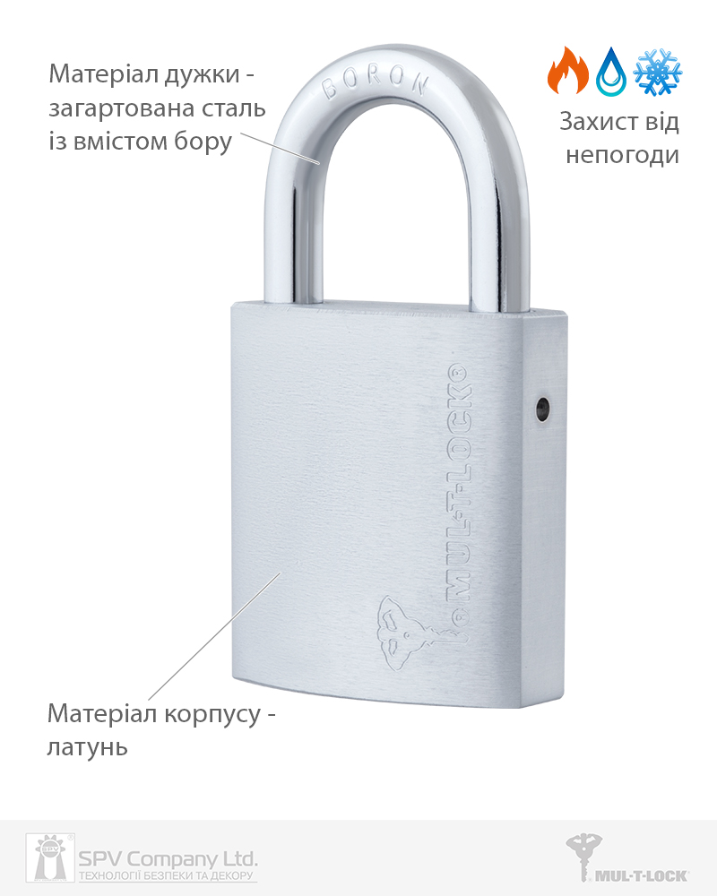 Матеріал: замок-латунь, дужка-загартована сталь із вмістом бору.