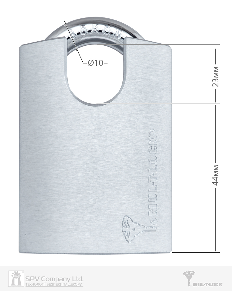 Висота дужки 23 мм. Діаметр дужки 10 мм.