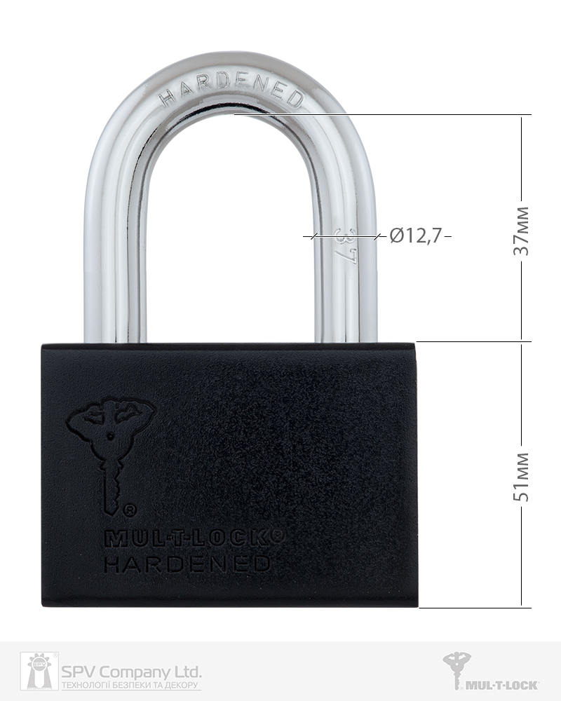 Висота дужки 37 мм. Діаметр дужки 12,7 мм.