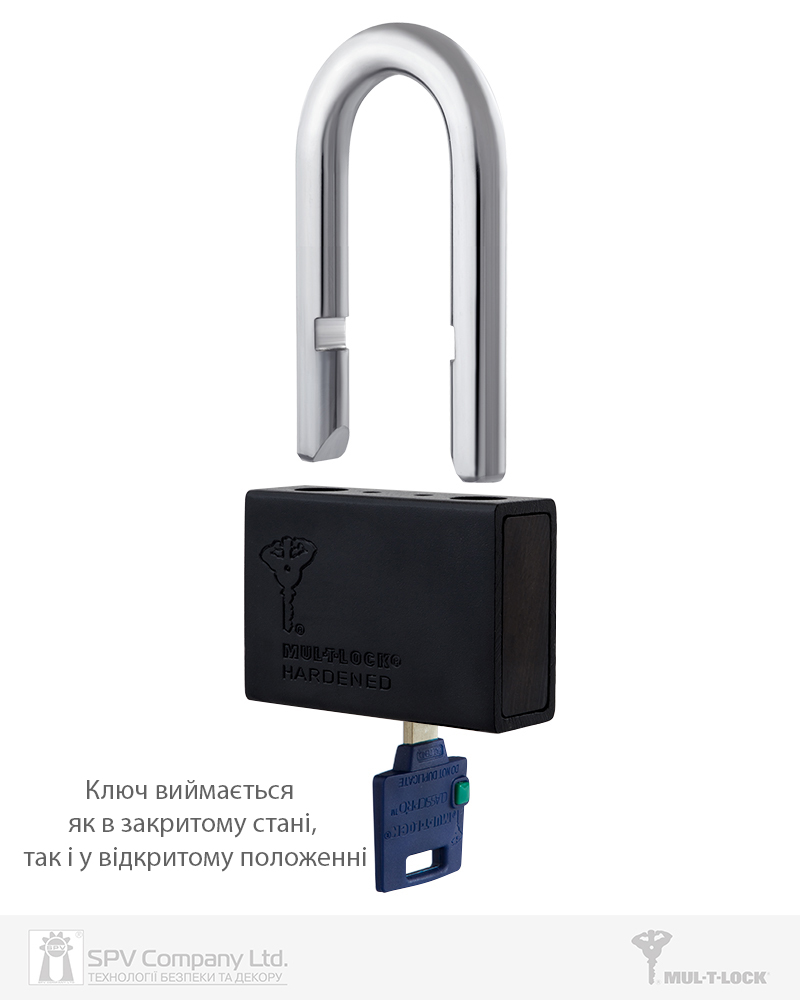 Висячий замок MUL-T-LOCK М13 підвищенної безпеки. Застосовується для забезпечення максимальної безпеки замикання контейнерів, гаражів, вагонів товарних потягів, складів і т.п.