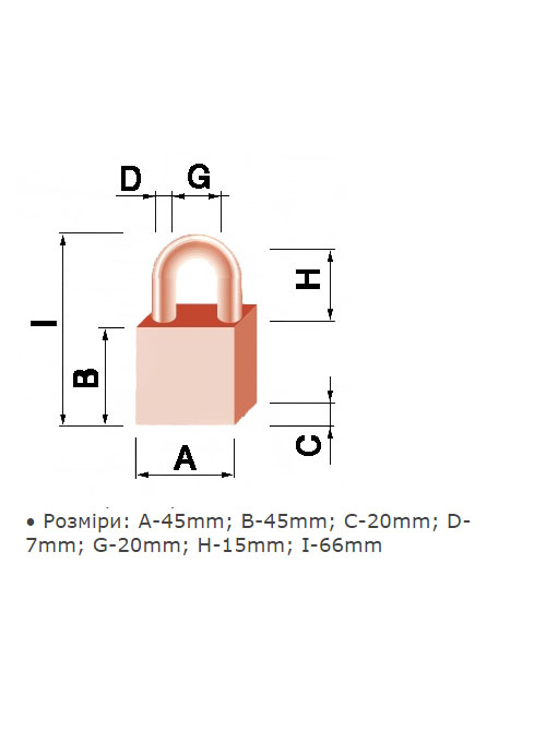 • Розміри: A-45mm; B-45mm; C-20mm; D-7mm; G-20mm; H-15mm; I-66mm