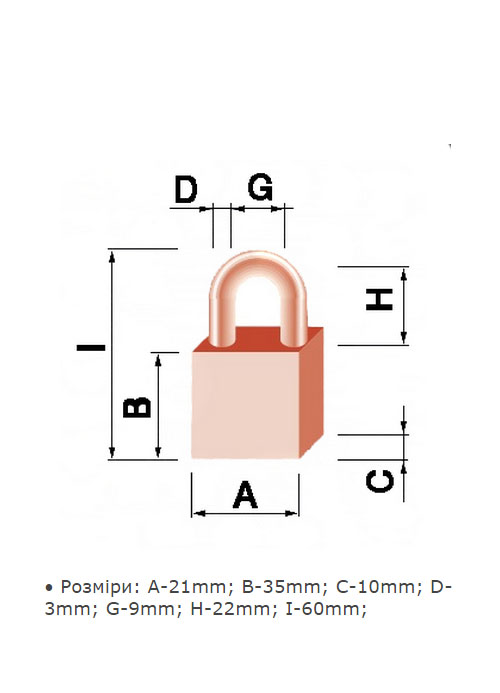 • Розміри: A-21mm; B-35mm; C-10mm; D-3mm; G-9mm; H-22mm; I-60mm;