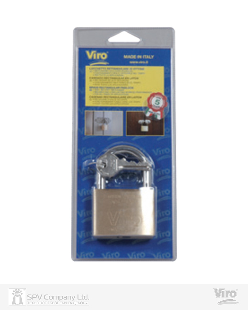 Дужка із загартованої і цементованої стали для захисту від злому та високої корозійної стійкості. Нікельовані ключі профілю Viro з латуні, 2 шт., ключ виймається як при відкритому, так і при закритому замку. Підпружинена дужка, висота дужки 35мм, діаметр дужки - 10мм.