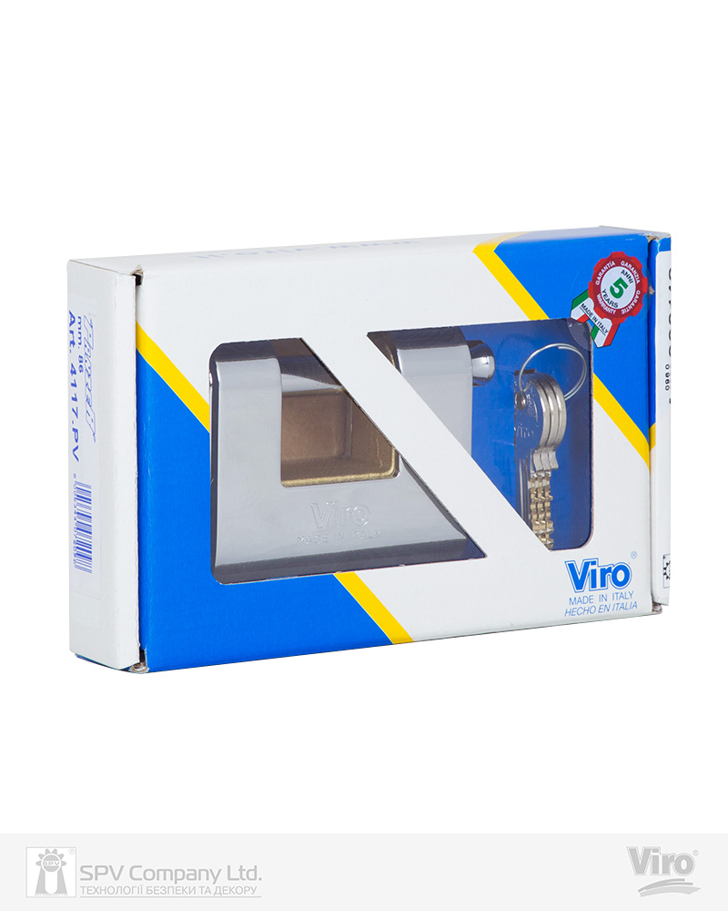 Замок висячий VIRO PANZER 4117 - завдяки використанню високоякісних матеріалів та ексклюзивній формі, яка робить практично неможливим вчинення крадіжки зі зломом, і максимально надійному механізму, броньовані навісні замки Viro "PANZER" є ідеальним рішенням для забезпечення безпеки віконниць, дверей і воріт.