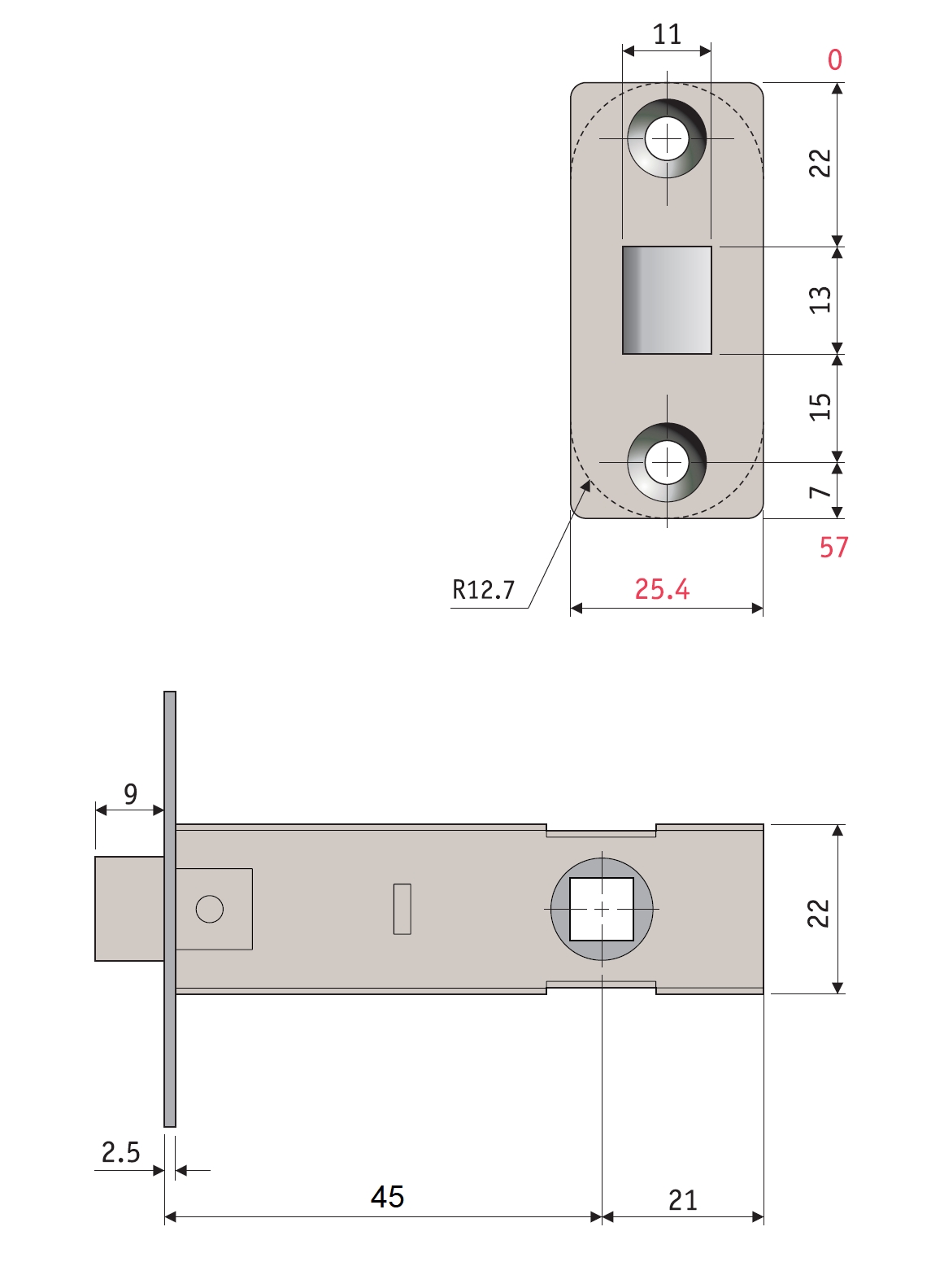 - Торцева планка (Висота х Ширина), мм: 57 х 25,4