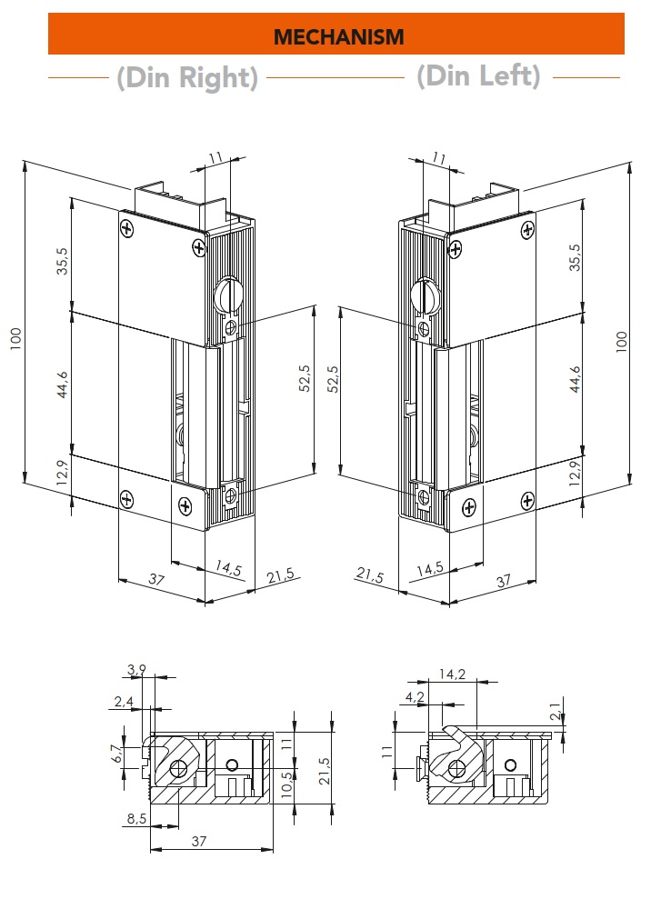 Защіпка електромеханічна вологозахищена для зовнішнього використання. Може бути встановлена у металеві, дерев’яні та профільні двері. Сумісні з більшістю стандартних врізних замків.