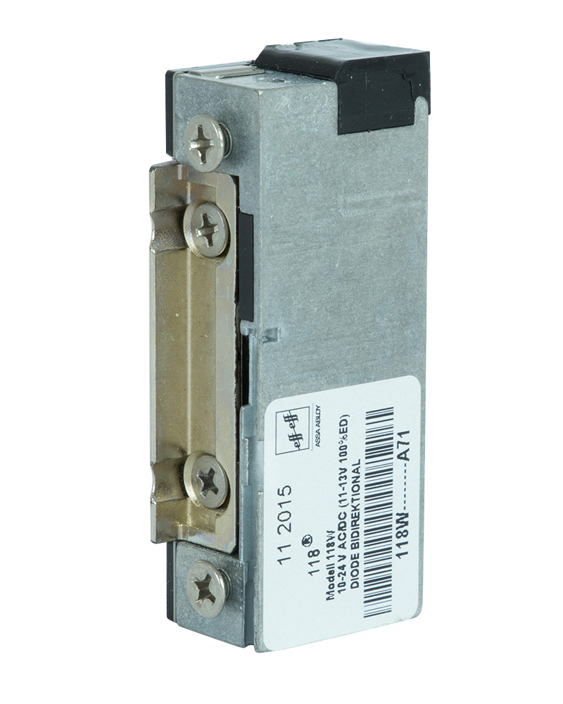 Защіпки електромеханічні серії 118/128 є найменшими у світі за розмірами стандартними універсальними електромеханічними защіпками з радіальним язичком та функцією FaFix. Можуть бути встановлені у металеві, дерев’яні та профільні двері. Сумісні з більшістю стандартних врізних замків.