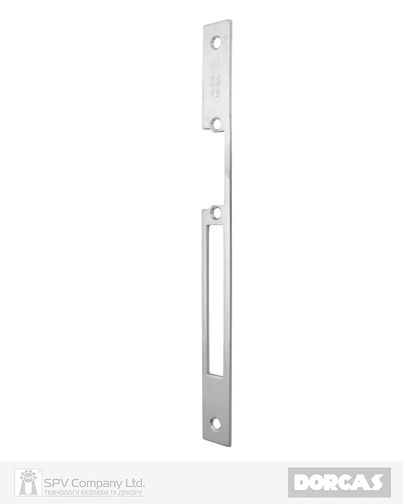 Довга зворотна планка з отвором для основного ригеля замка вхідних або міжкімнатних дверей.