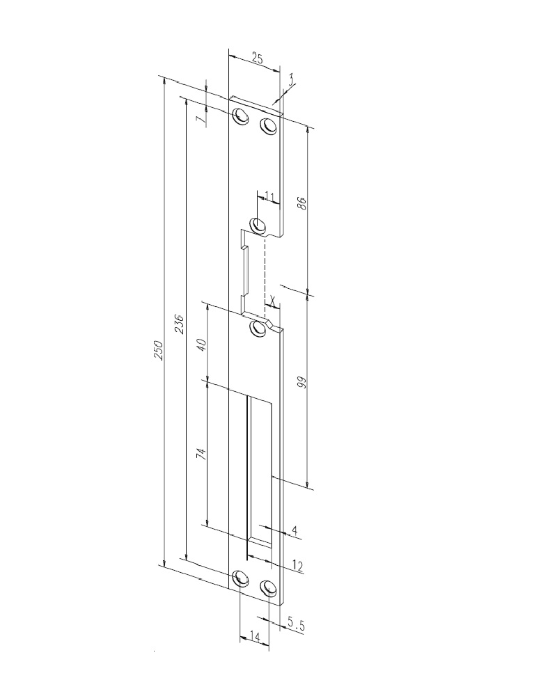 - Розміри (Висота х Ширина х Товщина), мм: 250 х 25 х 3