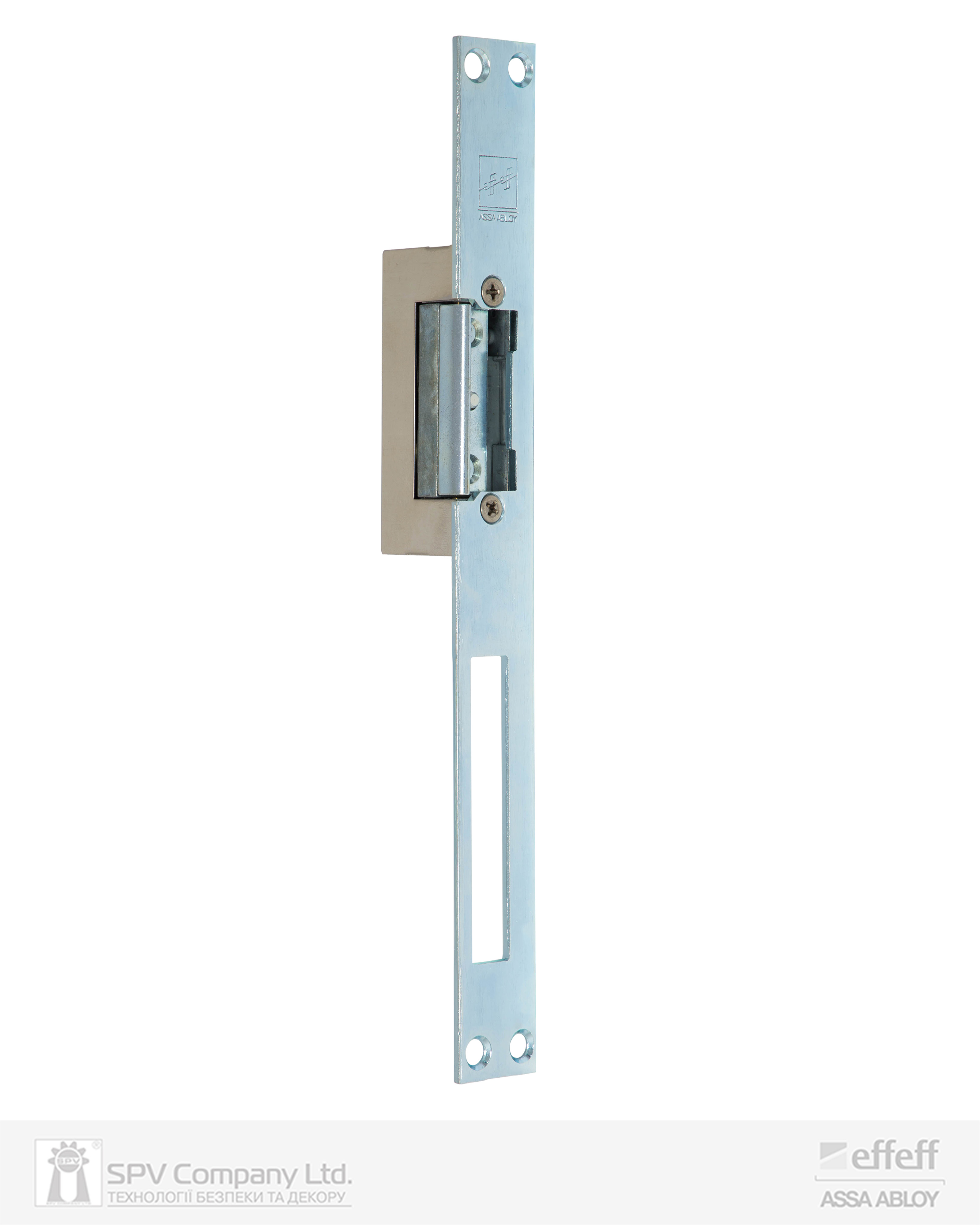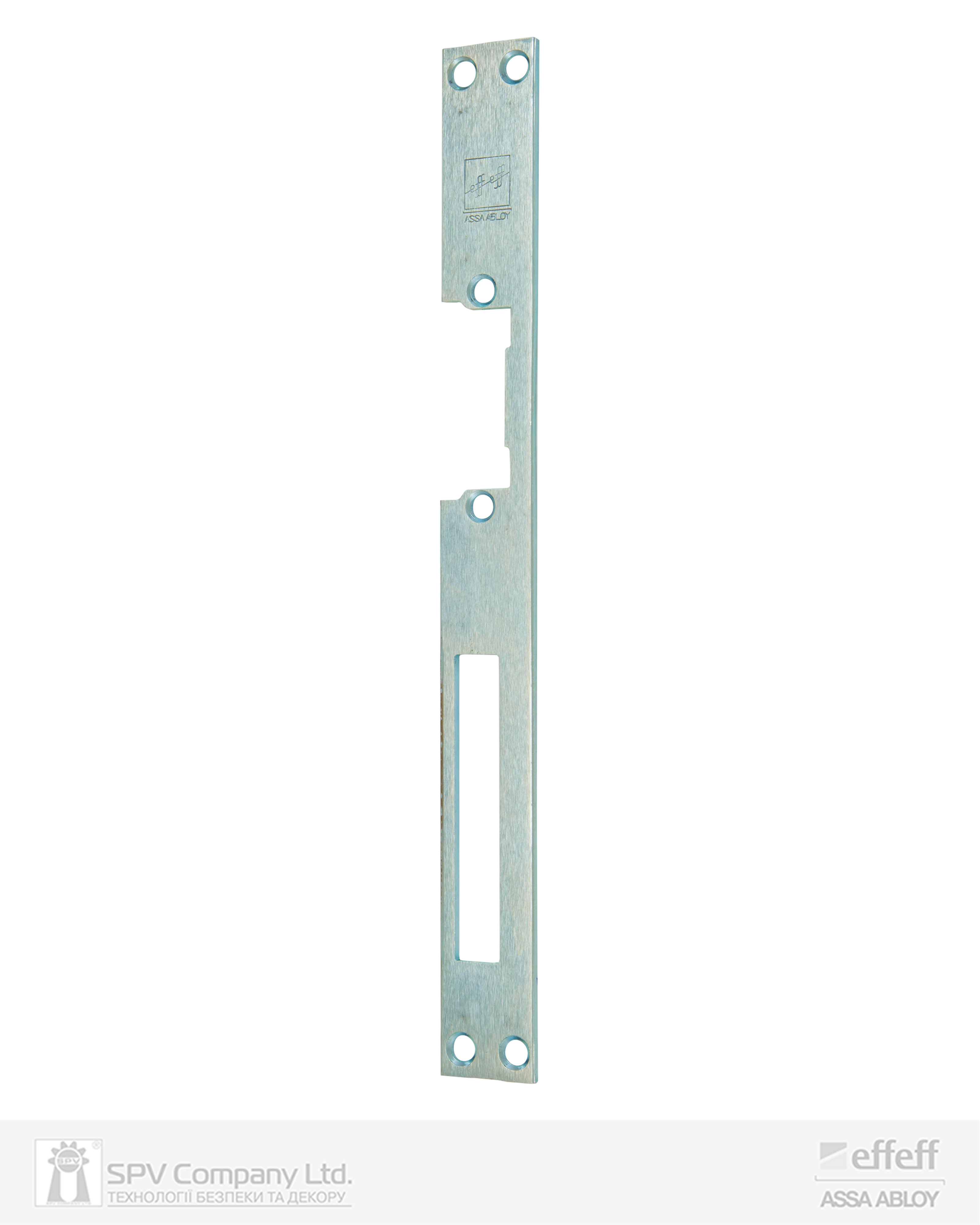 Довга зворотна планка з отвором для основного ригеля замка вхідних або міжкімнатних дверей.. Призначена для встановлення електромеханічних защіпок у дерев’яні та металеві рами прямих дверей та дверей з притвором. Сумісна з усіма стандартними електромеханічними защіпками EFF EFF (серій Е7, 118, SPE73, SPE).
