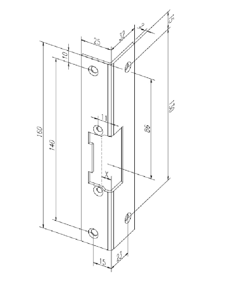 - Розміри (Висота х Ширина х Глибина х Товщина), мм: 160 х 25 х 32 х 2