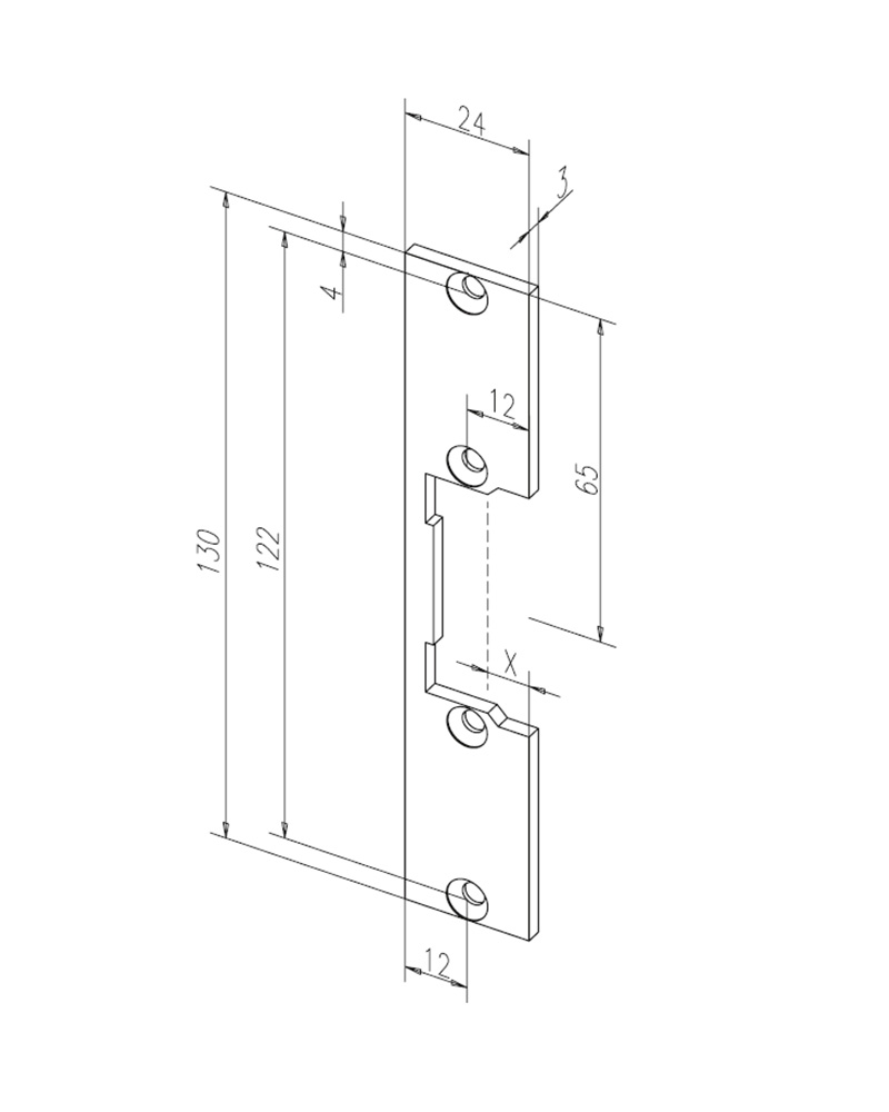 Коротка зворотна планка без отвору для основного ригеля замка. Призначена для встановлення електромеханічних защіпок з технологією ProFix 2 у дерев’яні та металеві рами. Сумісна з електромеханічними защіпками EFF EFF серії 118.13