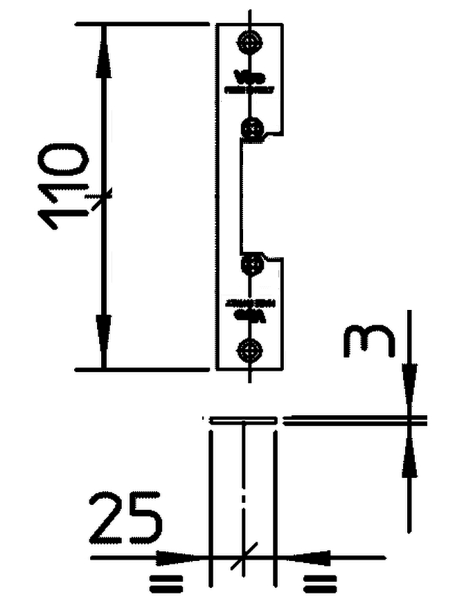 - Розміри (Висота х Ширина х Товщина), мм: 110 х 25 х 3