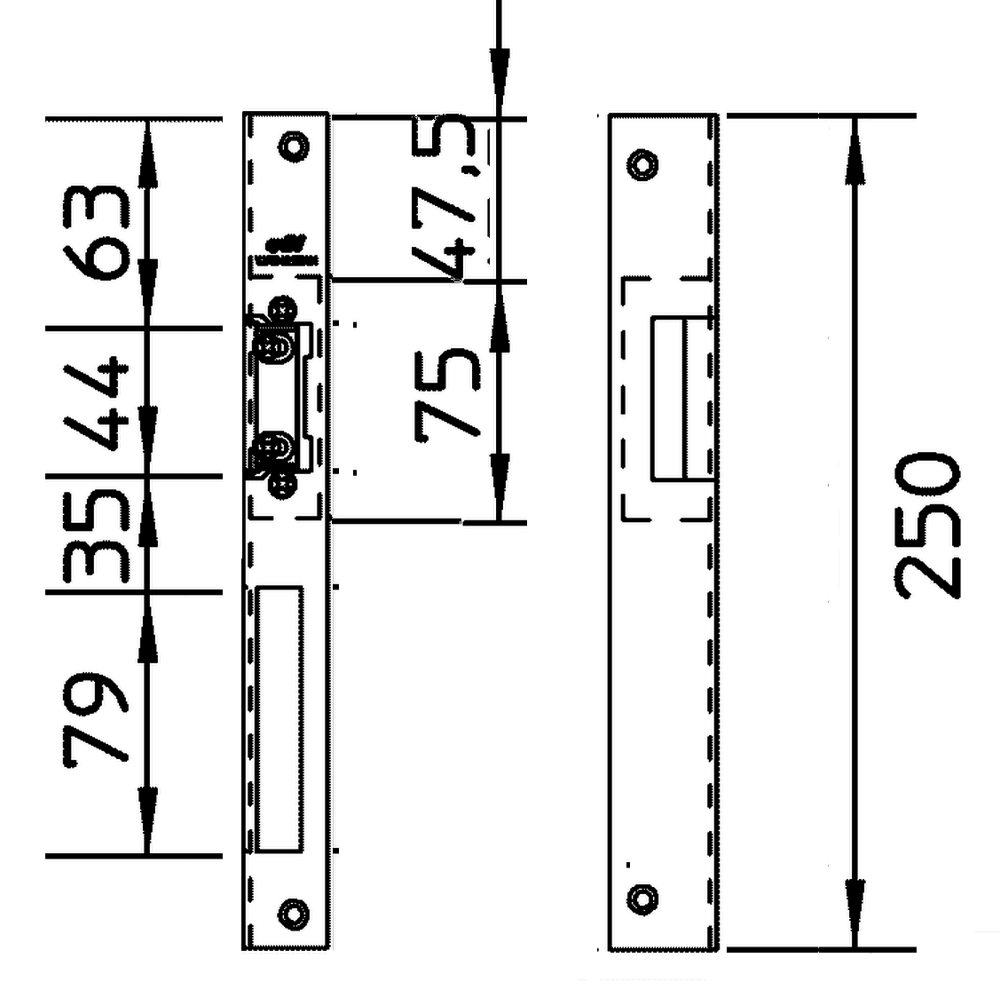 Довга кутова зворотна планка з отвором для основного ригеля замка. Призначена для встановлення електромеханічних защіпок у дерев’яні рами. Сумісна з усіма електромеханічними защіпками VIRO та іншими.