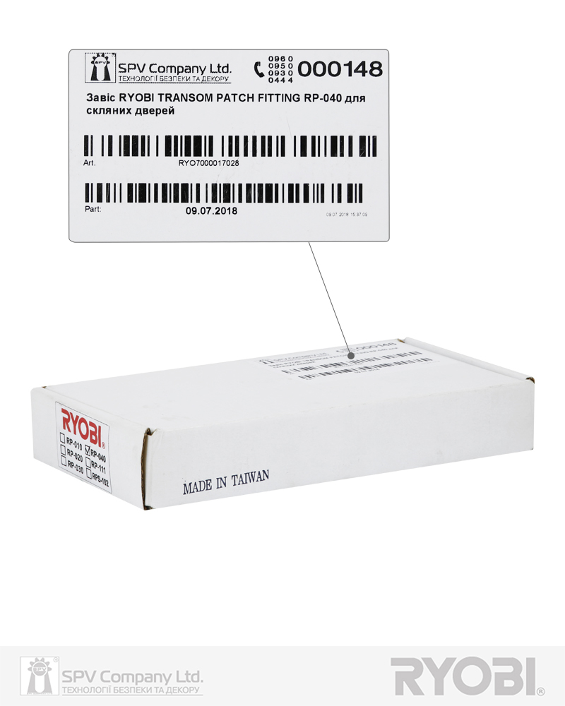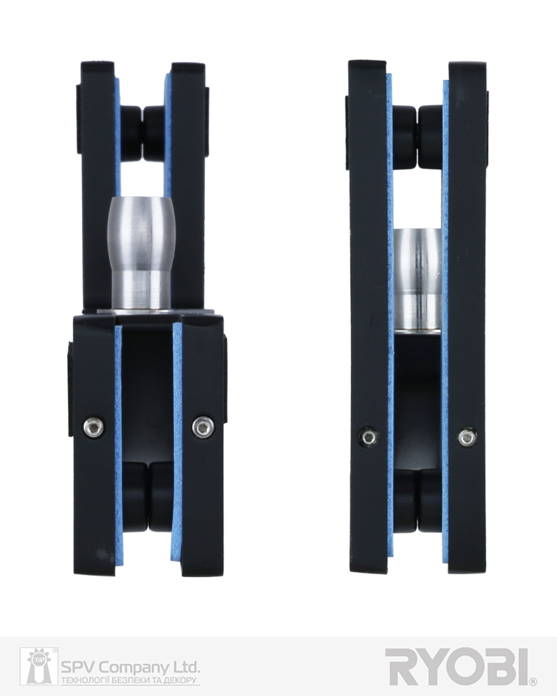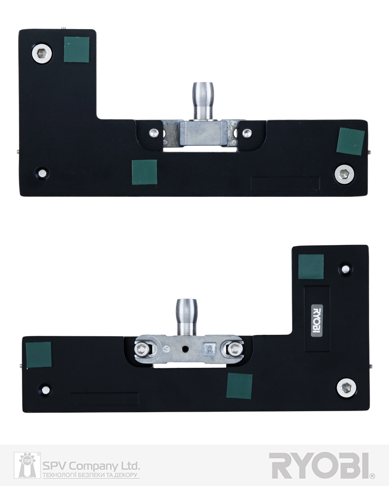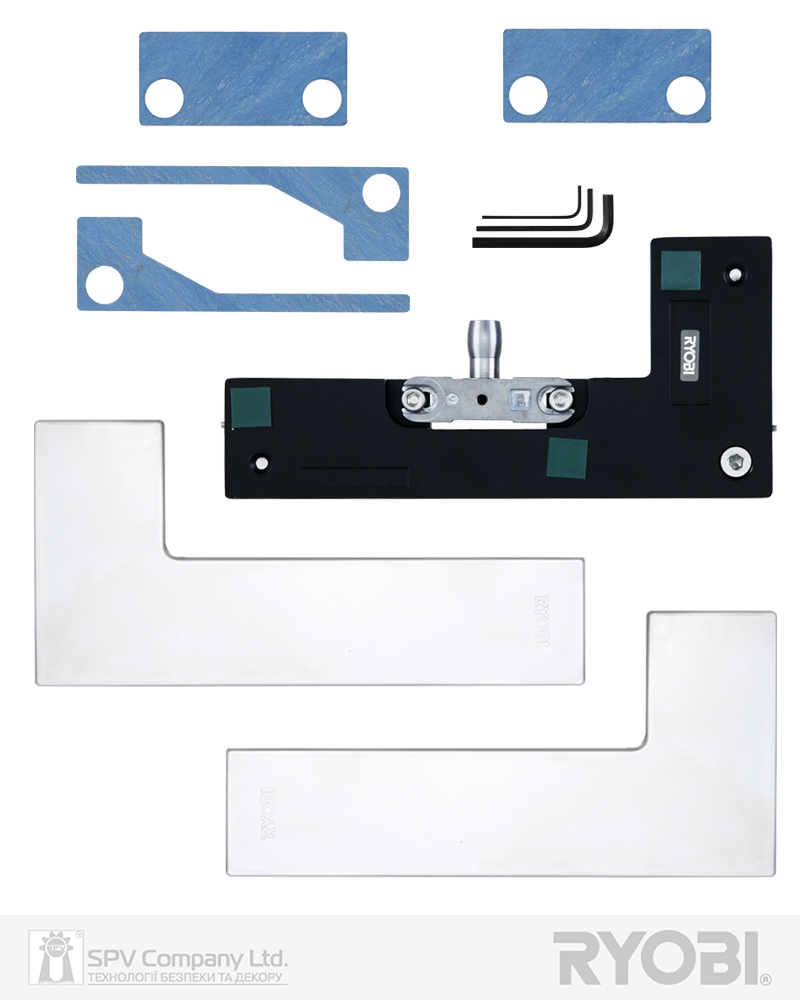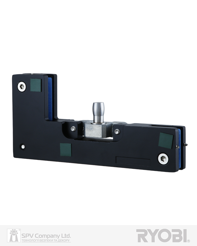 Верхня фрамужна завіса для скляних дверей завтовшки 10-12 мм з округлим штирем. Призначена для забезпечення повороту скляних дверей у верхній точці монтажа, коли двері монтуються в проєм зі скла. Застосовується разом із завісою верхньою RYOBI UPPER PATCH FITTING RP-020 для скляних дверей.
